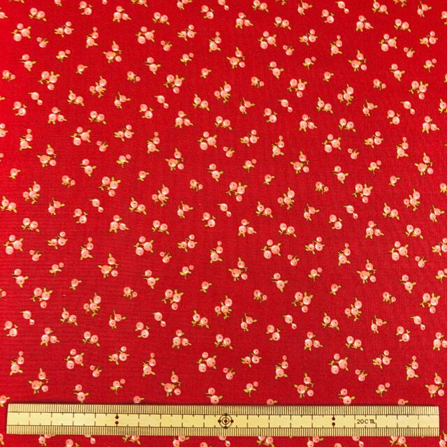 赤地に小さいバラがプリントされた生地です。