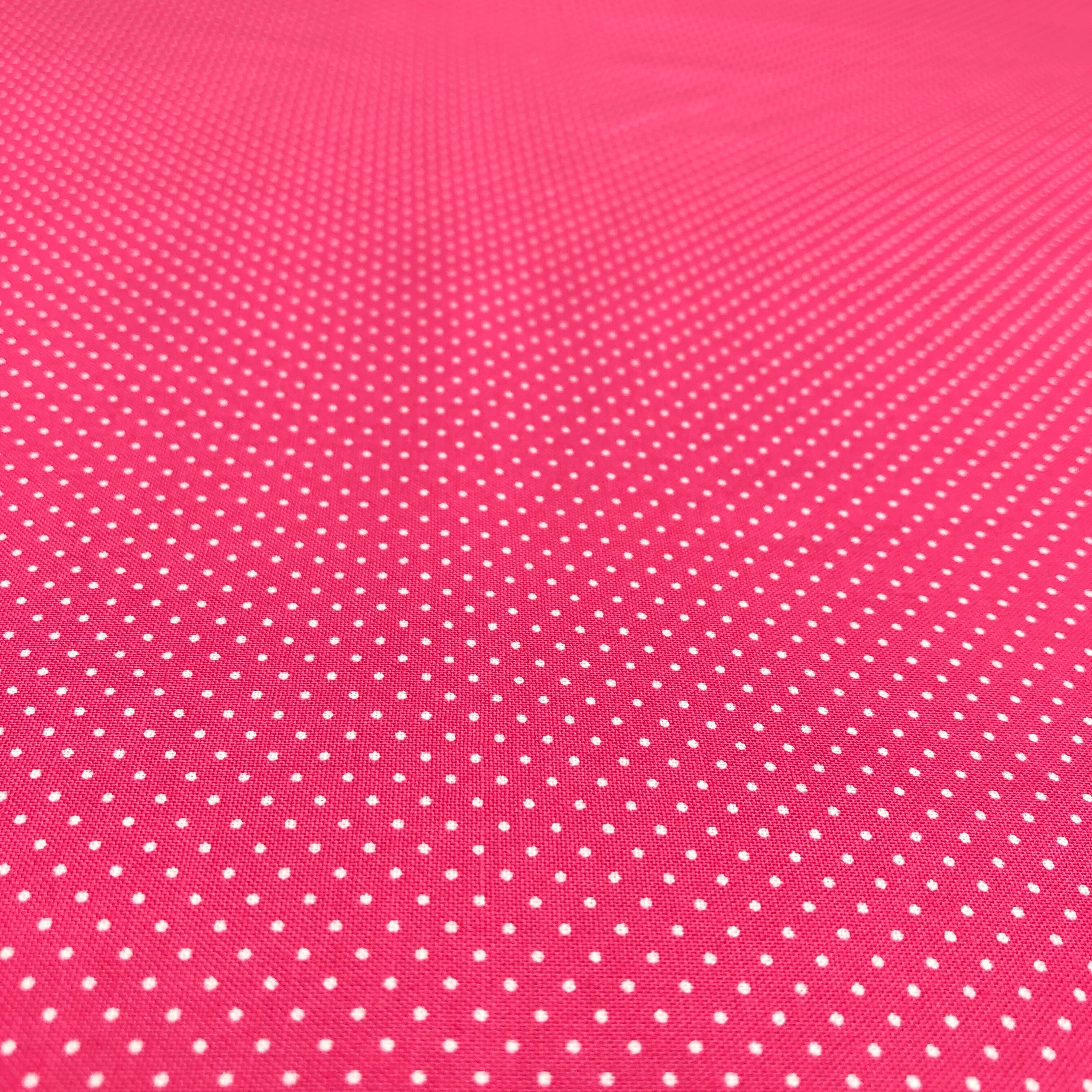 ピンク地に小さな白のドットがプリントされた生地です。