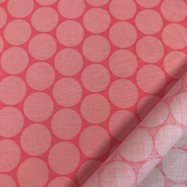 ベビーピンク地に大きなドットが敷き詰められた生地です。