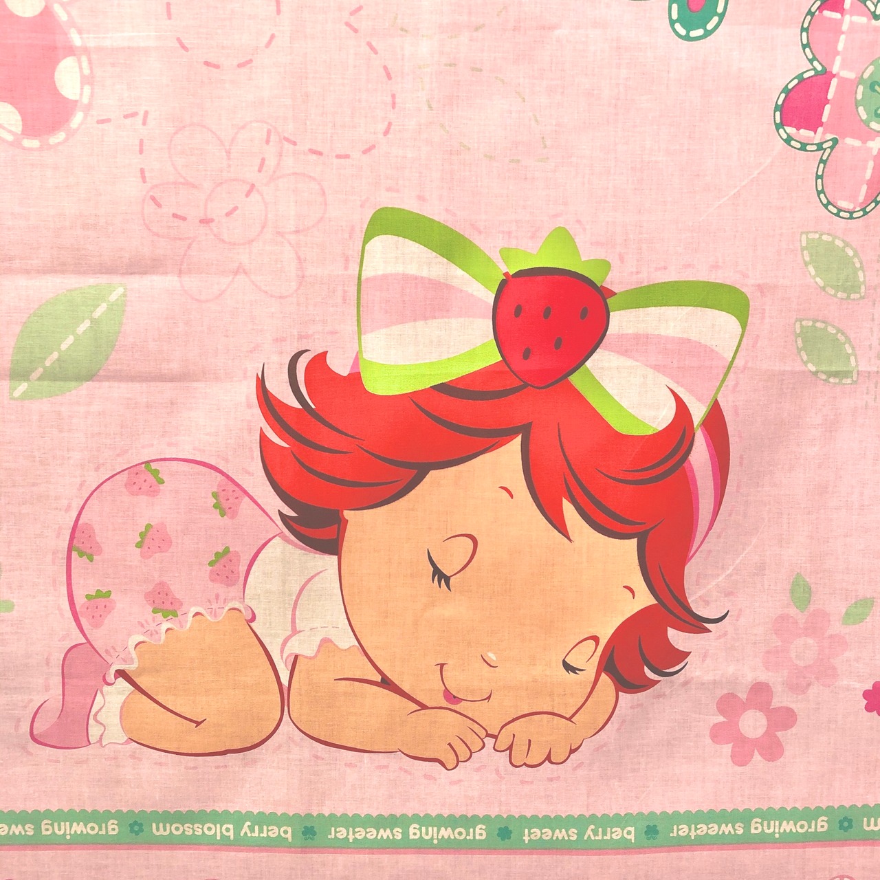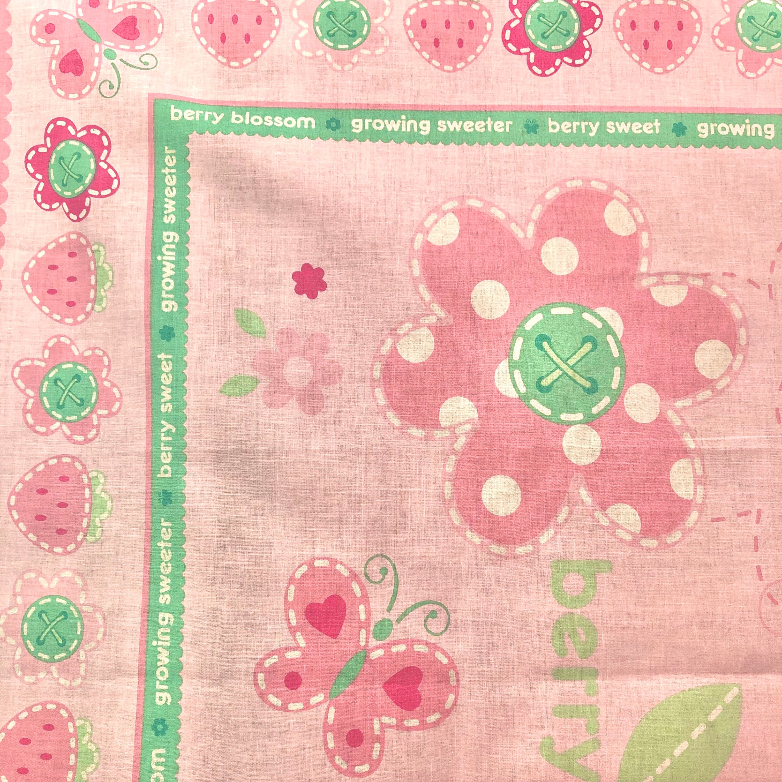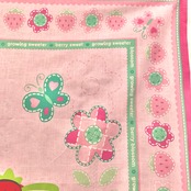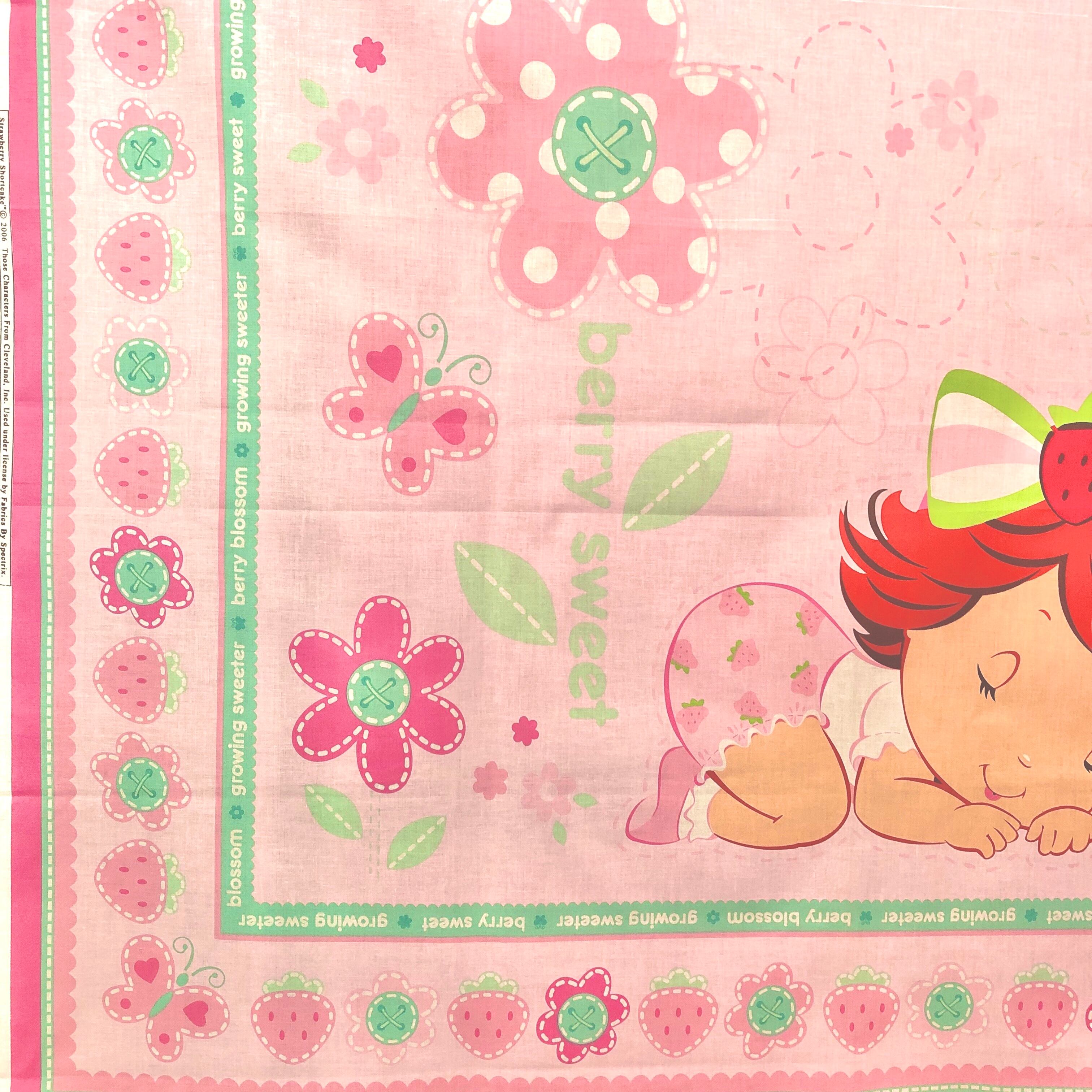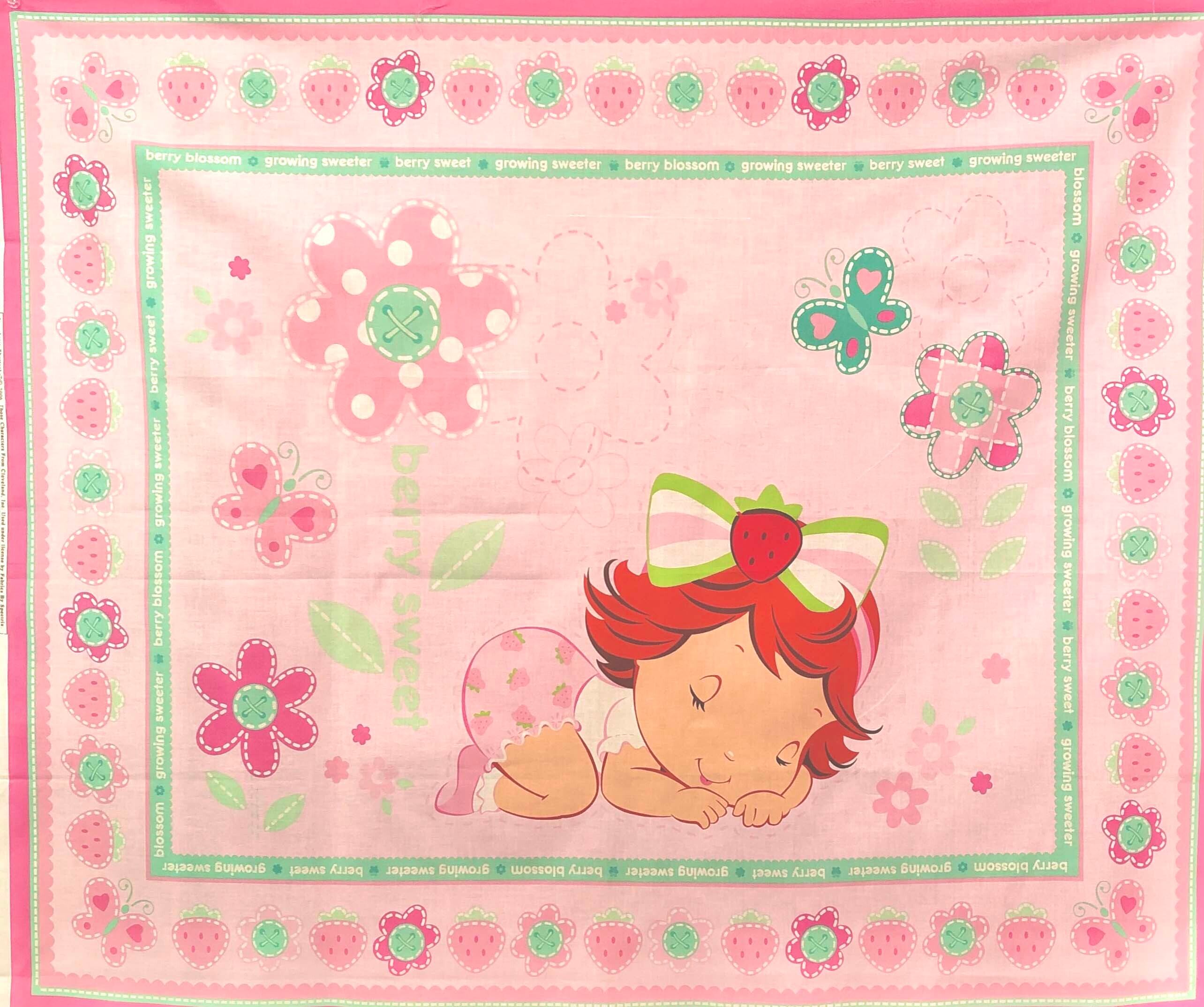パステルカラーの土台に可愛い女の子が寝ているパネル生地です。